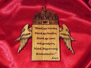 1404. Koronás "Hiszek egy ..." hűtőmágnes